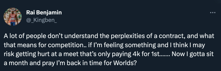 That said, given the brutal reaction Marcell Jacobs received for dropping out of the Rabat DL, maybe at some point you lose the fans if that card is pulled too often. But if WWE’s taught me anything, it’s that there’s also good money in turning heel, if there’s an interest in seeing the race.