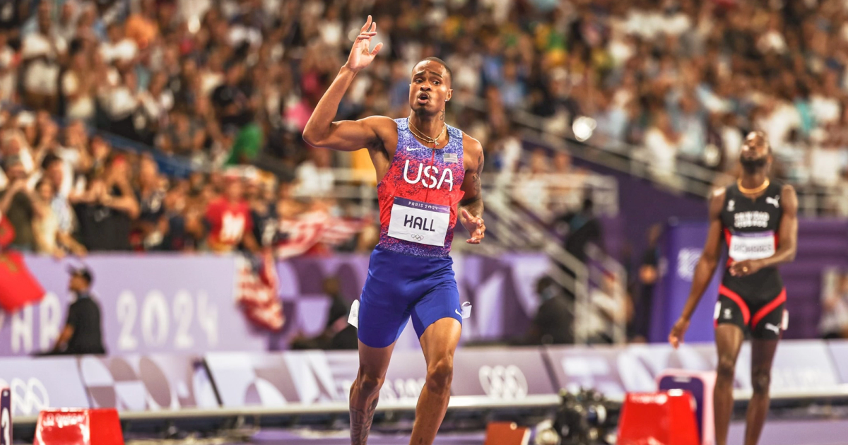 – Hall charged down the home stretch to win gold in the 400m final in Paris with a personal best of 43.40 seconds, which put him at No. 4 on the world all-time list and No. 3 on the U.S. all-time list. Hall became the first American to win Olympic gold since LaShawn Merritt at the 2008 Summer Games in Beijing.