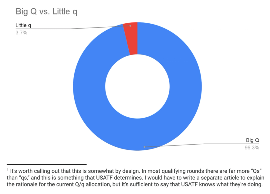 Another phrase you’ll often hear during trials coverage is “a Q is a Q.” An athlete can qualify to subsequent rounds in two ways. First, they can qualify based on their place (designated as a “Big Q” on the results). Alternatively, they can qualify on their time (designated by a “little q”). The common track adage that “all Qs are created equal” is accurate in that, regardless of qualifying type, the athletes end up competing in the next round. However, qualifying for the Olympics after making the final round in a little q is extremely rare. Only two athletes accomplished the feat this year: Juliette Whittaker in the women’s 800m and TeeTee Terry in the women’s 100m.