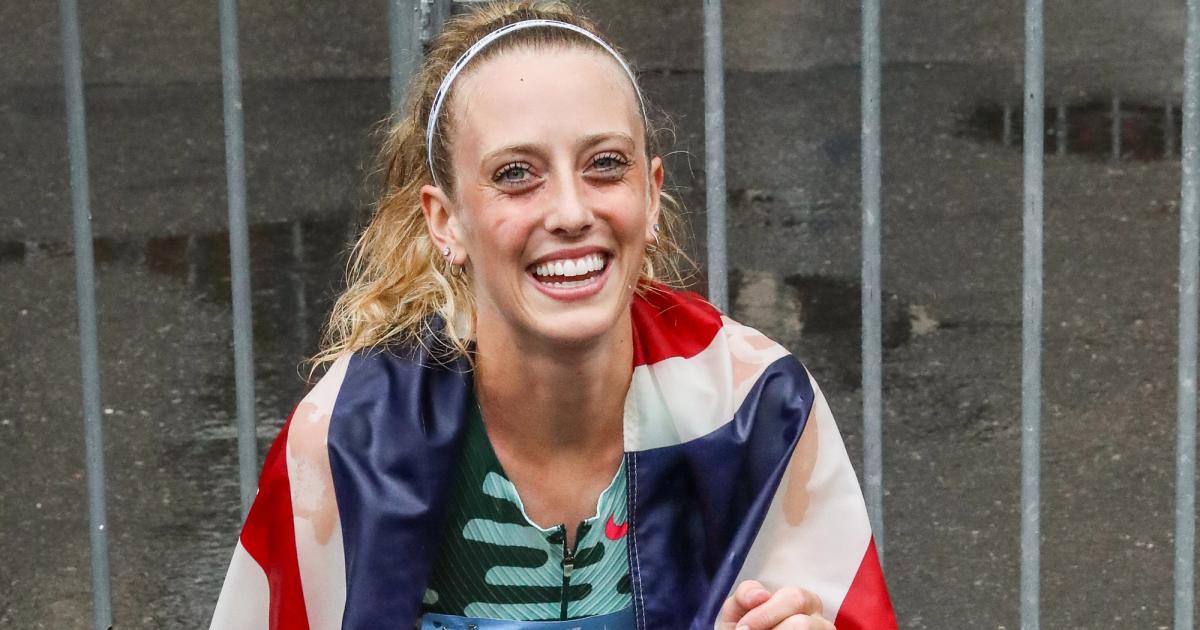 Great Britain's Jemma Reekie all smiles after winning the 2023 NYRR 5th Avenue Mile.